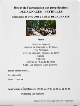 repas de chasseurs de l'association des propriétaires Dégagnazès - Peyrilles
